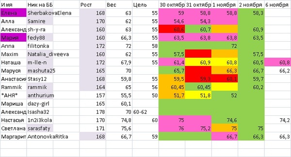 Теперь о приятном - видите, я у некоторых рост серым выделила? Это те девочки, которые участвуют в обмене подарками! Проверьте, правильно ли?