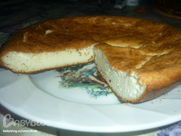 Сегодня на просторах сайта нашла рецепт у одной девочки, у нее он называется лимонный кекс. Т.к. я пекла в груглой и широкой форме, у меня получился пирог) и больше не лимонный, а творожный. Наверное, так хреновенько работает моя старенькая духовка (стоял он у меня там почти час, и все равно внутри получился творожный (сыроватый что ли). Но мне ООчень понравился!!! Решила Вам показать. Делала все строго по рецепту, только творог у меня был 0%, но рассыпчатый! Поэтому я его смешала с 0% йогуртом и блендером сделала однородную массу. Получился жидкий творожок). Форму, как и пишет автор, смазала маслом (чуть-чуть) и присыпала пшеничными отрубями. От формы отстал прекрасно!!! Вообщем, приятного аппетита, девочки!!
