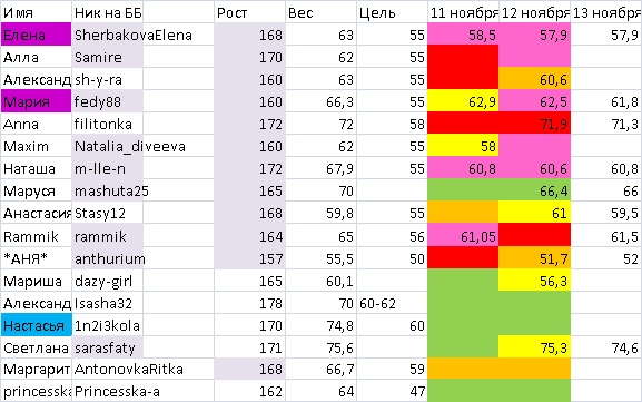 Отчеты-результаты о питании, о тренировкахПроверяем табличку: