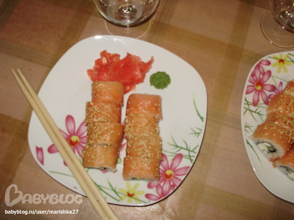 Ужин был типа романтический, суши и один бокал сухого красного вина, все таки мне кажется суши тяжелая еда для ужина