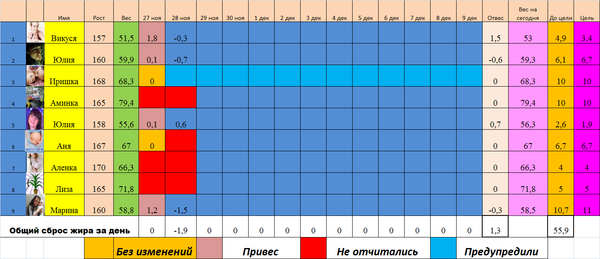 Нас отчиталось 4 человека, если так и дальше пойдет пойдем к Юличке в табличку!!! (Надеюсь она нас приймет)