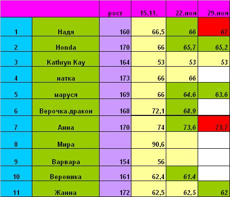 Надя в Клуб Стройнеющих 13 лет вторая неделя позади =) Отчеты-результаты о питании, о тренировках Посмотрите еще 20 записей на эту тему Отменить Ответить Жанна Надя, привет! не увидела отчет за третью недельку.. у меня 61,8 ) 09.12.2012 Ответить Надя я все в первый пост скидываю, в основном все туда пишут , я еще разместила таблицу с объемами 09.12.2012 Ответить Жанна у меня 62 ), разболелась поэтому 6 лепестков накрылись, считаю калории и сплю)) 30.11.2012 Ответить Надя поправляйся =) а я на телефон установила счетчик калорий , удобная вещь) 01.12.2012 Ответить День 44 (30.11.12) Отчёт за 30.11.2012г Чаты Беременных Выберите чат: Январята-2026 Февралята-2026 Мартята-2026 Апрелята-2026 Майчата-2026 Июнята-2026 Июлята-2026 Августята-2026