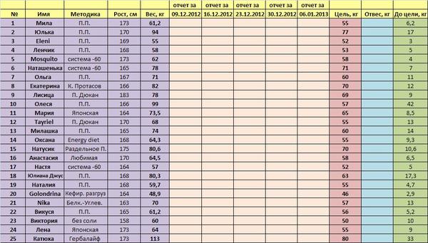 P.S. Таблички-отчеты буду создавать по частям - это ЧАСТЬ 1: с 09.12.2012 по 06.01.2013.
