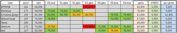 Отчеты-результаты о питании, о тренировкахДевочки, все кто отчитался за предыдущие дни - молодцы!! у всех отвесы)