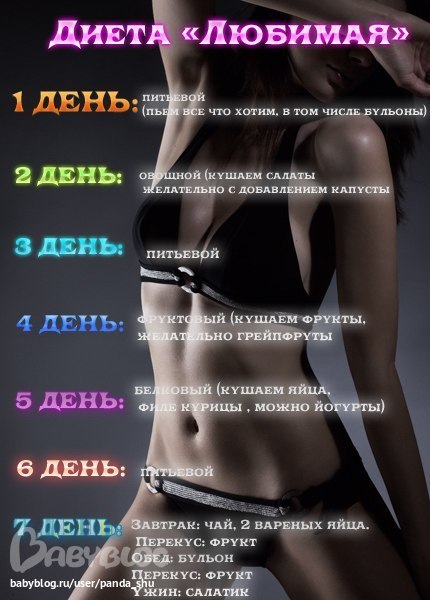 в идеале нужно скинуть 7кг. Понятно дело, что за шесть дней этой диеты все они не уйдут, но с чего то нужно начинать, потом планирую с диеты на систему -60 перейти.