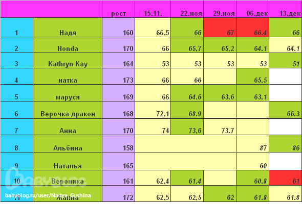 Надюш,запиши меня -2кг,у подружки взвесилась и оказывается 51кг))),я довольна!!!