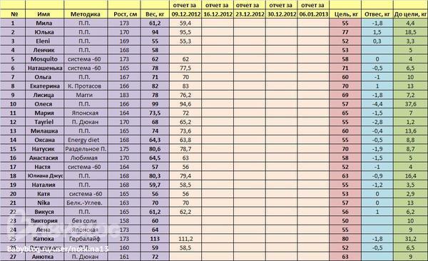 Отчеты-результаты о питании, о тренировкахВсем привет, отчитываемся 16.12.2012 тут