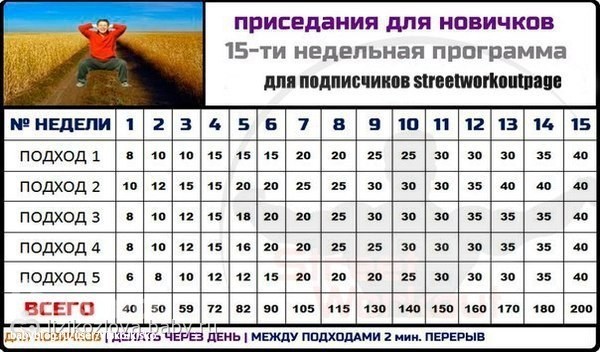 Глядя на вас тоже решила немного спортом заняться) подскажите, а по таблице присиданий вы каждый день занимаетесь или как там написано через день?