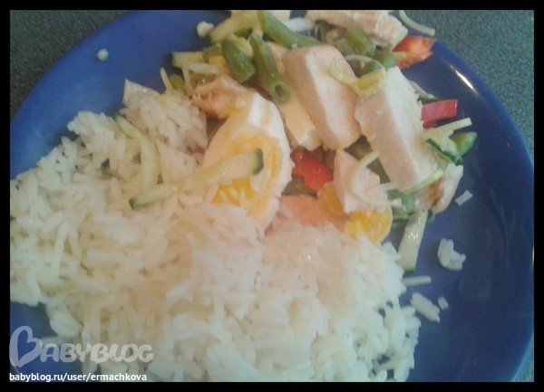 На обед был рис Жасмин и салат с фаслью. Рецепты можно почитать в дневнике)))