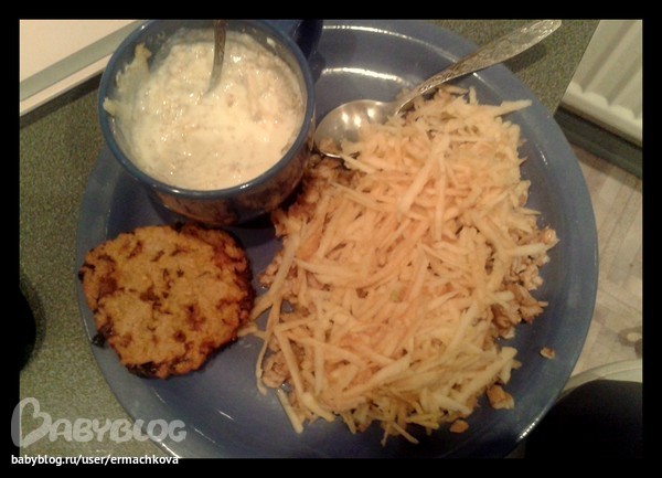 На сегодня у меня на завтрак: каша пшеничная - 50гр(сухой), яблоко 150гр, йогурт домашний 100гр, печенье овсяное домашнее 20гр