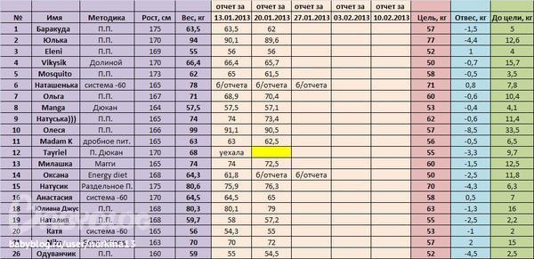 практически все с отвесиками и все отчитались, кроме № 12 Tayriel, ты обещала вернуться к нам в середине января!! и пропала..отзовиииииись, а то у тебя первая желтая карточка!!! а мы любуемся табличкой здесь:
