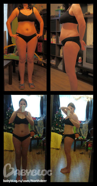 Взвешиваться не взвешивалась, поэтому результат в сантиметрах и фото - хотя мне кажется, если в профиль живот чуток подтянулся, то анфас так ваще разницы нет...,