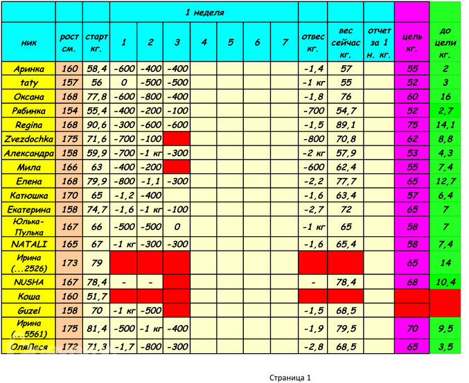 Отчеты-результаты о питании, о тренировкахОтчитываемся до 18:00, потом вставляю табличку!