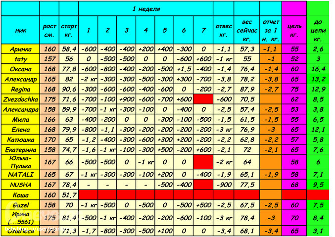 Отчеты-результаты о питании, о тренировкахОтчитываемся до 18:00, потом вставляю табличку!