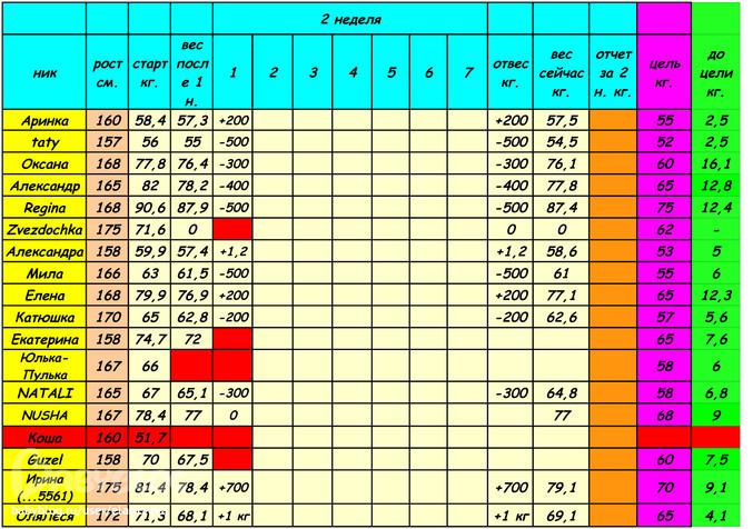 Отчеты-результаты о питании, о тренировкахОтчитываемся до 18:00, потом вставляю табличку!