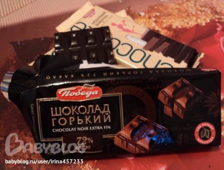 А я его просто обожаю! Я люблю именно шоколад, а не шоколадные конфеты и не сладкую плитку - пластилиновую карикатуру на шоколад. Я запросто могу слопать целую плитку настоящего шоколада за один раз! Раньше мой любимый был молочный с фундуком, а теперь я перешла к горькому шоколаду, да чтоб содержание какао продуктов было минимум 50%! Эта любовь к черному горькому лакомству проснулась во мне, когда я узнала, что в таком шоколаде самое меньшее число калорий. А знаете, как узнать, что лежит перед вами – настоящий шоколад или удачная подделка? В составе обязательно должно быть какао-масло! Интересные факты о шоколаде: