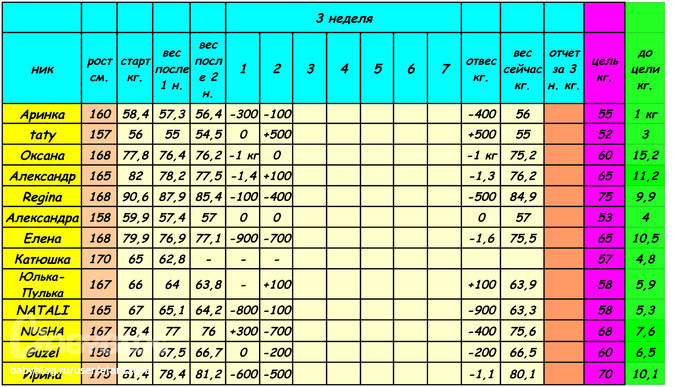 Отчеты-результаты о питании, о тренировкахОтчитываемся до 18:00, потом вставляю табличку!
