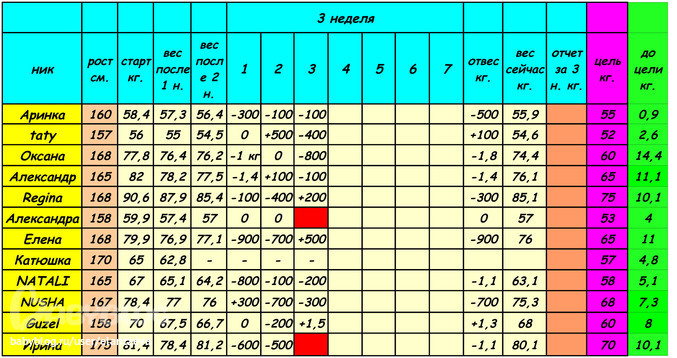 Отчеты-результаты о питании, о тренировкахОтчитываемся до 18:00, потом вставляю табличку!