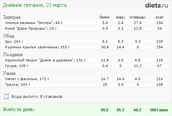 меня смущают крылья - почему так мало калорий и жира. или ты их без кожи ела? тогда вопросов нет)