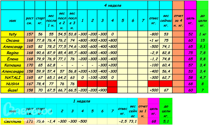 Отчеты-результаты о питании, о тренировкахОтчитываемся до 18:00, потом вставляю табличку!