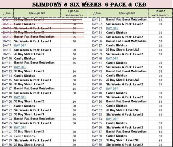 хз, я как-то не задумывалась над этим, в любом случае на мой взгляд подобраны трени интересно: 30дневка, плоский живот, кикбоксинг и метаболизм - кардио, в общем вполне уместное чередование)))))