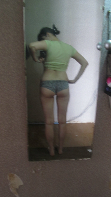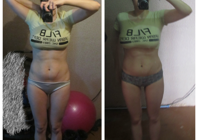Было-стало между фото прошел месяц, незнаю увидите ли вы разницу, но в талии я потеряла 3 см, а попу на 5 см подкачала. И ноги тоже на 3 см меньше стали.