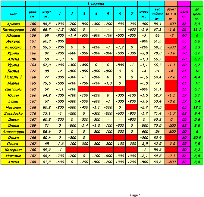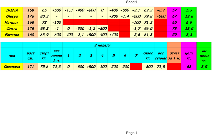 Отчеты-результаты о питании, о тренировкахОтчитываемся до 18:00, потом вставляю табличку!