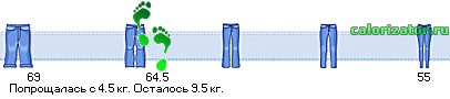 *Вес гуляет +- 500-700 грамм, поэтому ставлю не по нижней грани отвеса (64), а по средней, выше которой не поднимался вес последние 3-4 дня.