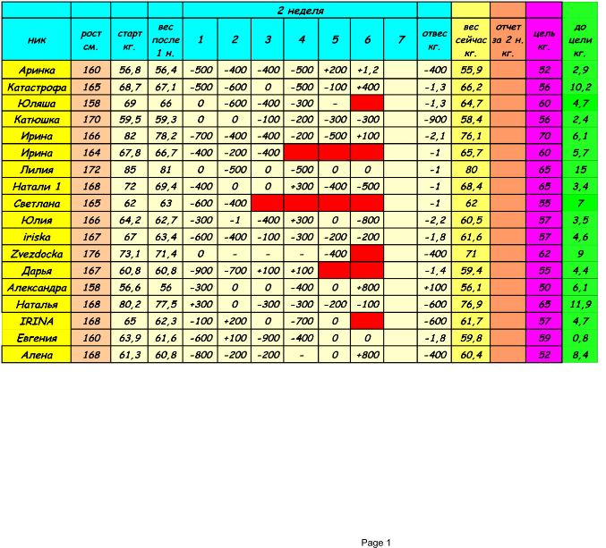 Отчеты-результаты о питании, о тренировкахОтчитываемся до 18:00, потом вставляю табличку!