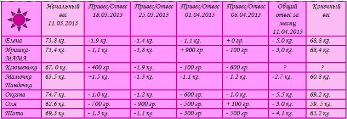 Пока выкладываю нашу табличку (если кто забыл свой вес в начале спора).