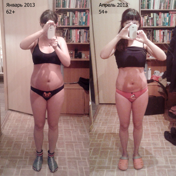 Вообще похудение мое началось после родов 26.12.12. До беременности весила 50кг. Рожать шла 68. Вышла из РД 64-65кг. Выглядела ужасно! Живот висел аж до трусов. Попа тоже обвисла и обрела целлюлит (до родов у меня даже на мека на него небыло никогда). Первая фотка сделана примерно в конце января. Там я весила 62-63кг (точно не помню). А сегодня я встала на весы, и вуаля 54,4))) Счастья полные штаны))))