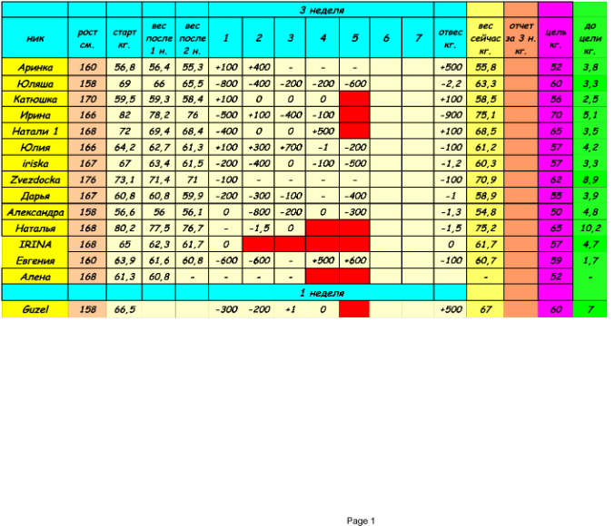 Отчеты-результаты о питании, о тренировкахОтчитываемся до 18:00, потом вставляю табличку!