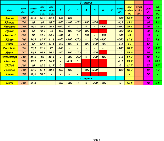 Отчеты-результаты о питании, о тренировкахОтчитываемся до 18:00, потом вставляю табличку!