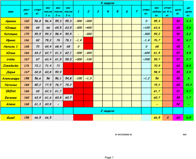 Грустная у меня таблица, отчитаюсь в пятницу, сегодня только кефир и чуточка морской капусты, завтра всю дорогу тоже самое.