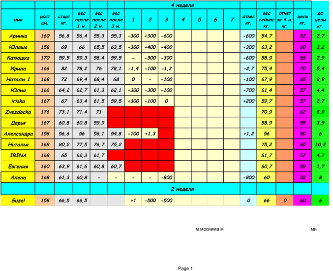 Отчеты-результаты о питании, о тренировкахОтчитываемся до 18:00, потом вставляю табличку!