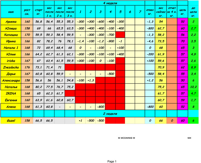 Отчеты-результаты о питании, о тренировкахОтчитываемся до 18:00, потом вставляю табличку!