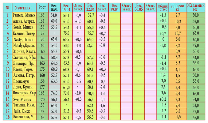 "Худеем к лету"... Табличка результатов!