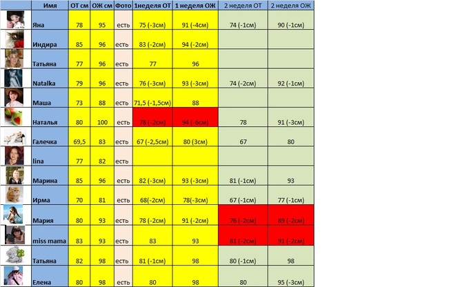 А вот и табличка. На этой неделе у нас лидируют Мария и MissMamma у девченок по -4см, поздравляю, так держать!