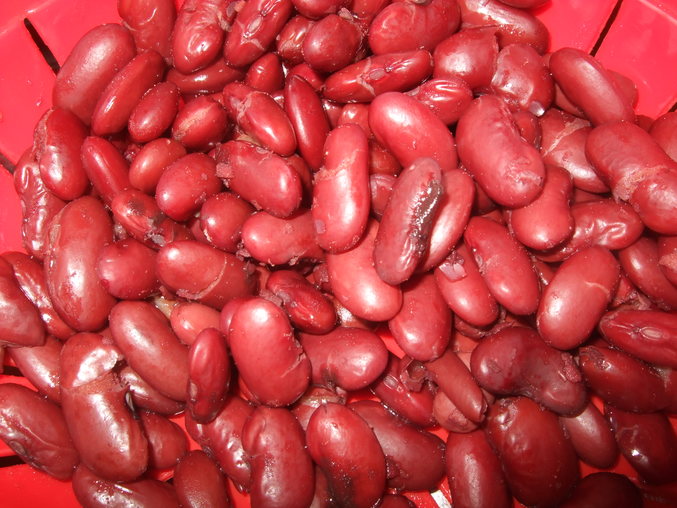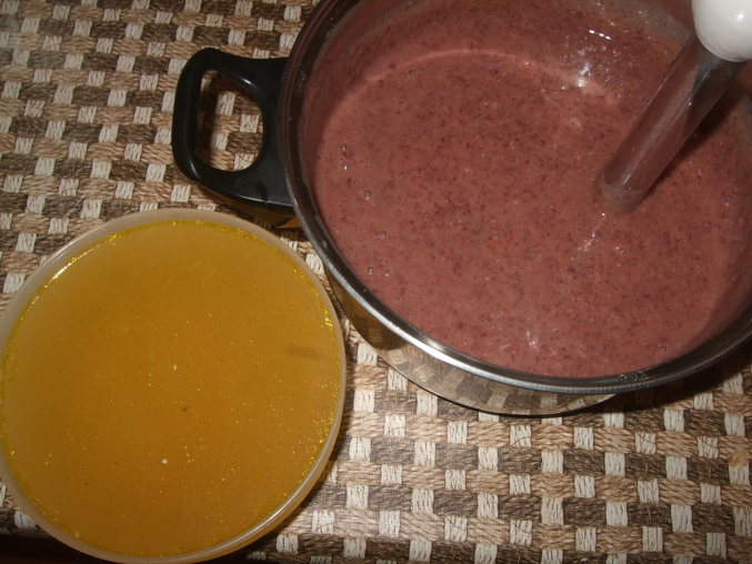Фасоль измельчаем блендером и разводим бульоном от грудки