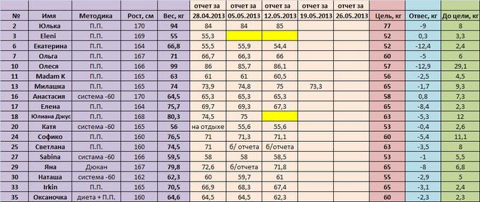 Я ложусь в больницу с понедельника на неделю точно, там еще не известно..соответственно интернета там нету, а это значит, что отчитываемся все в эту табличку и 19 мая, и если не появиться новый пост, то и 26 мая!! вернусь домой-все всем запишу, так что не сачкуем!!!