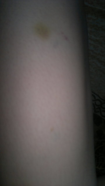 Таких синяков куча и маленкие,и большие! Причем в тех местах,где я точно не могла удариться. :( Страшно чего-то. ((