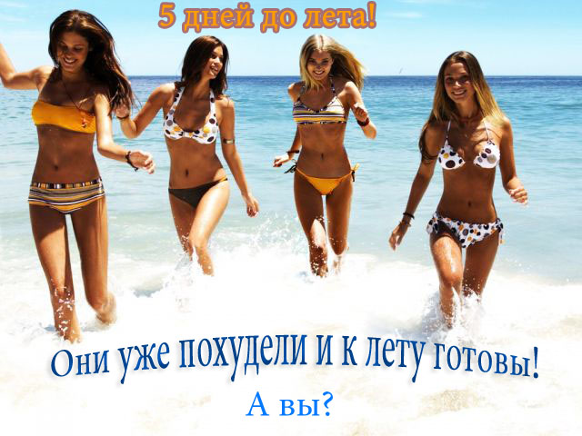 Напоминаю, осталось 5 дней до лета и начинаем обратный отчет, еще неделька что бы добиться потрясающих результатов!