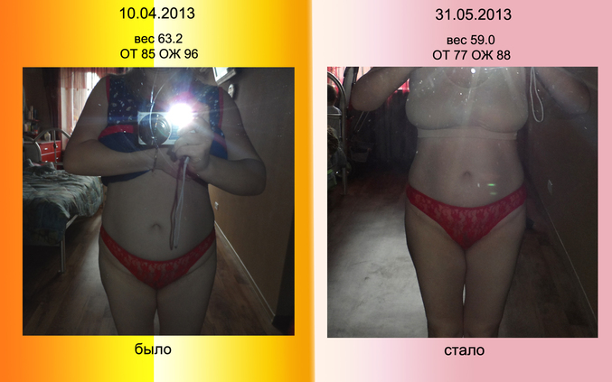 Эххх.. если б не моя лень.. результаты были бы лучше. Ну да ладно, зато фото радует ДО и ПОСЛЕ. Яночка, тебе отдельное спасибо, если б не ты, до сих пор бы сидела и читала просто, что другие пишут, а с твоим контролем взялась за себя!!!
