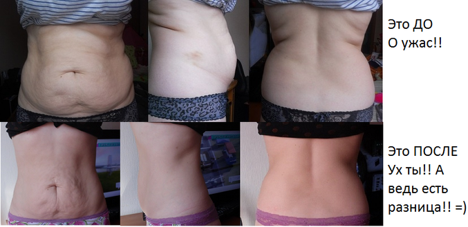 Лично я результатом очень довольна, особо радует состояние кожи - она стала более подтянутой. В июне хочу еще с обертываниями попробовать.