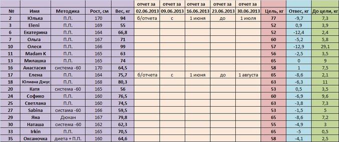 Отчеты-результаты о питании, о тренировкахПривет, девочки! мы уже вместе 6-й месяц и у нас снова новая табличка-часть 6! ура! всем хороших отвесиков!!!