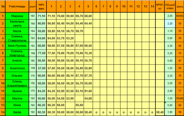Здорово!!! У тебя уже -3кг!!!Отличный результат!!!