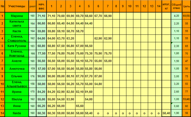 А у меня почему то стоит у тебя вчера такой вес, может я что перепутала..Откидывай эти мысли!!!!Давай, продолжаем!!!