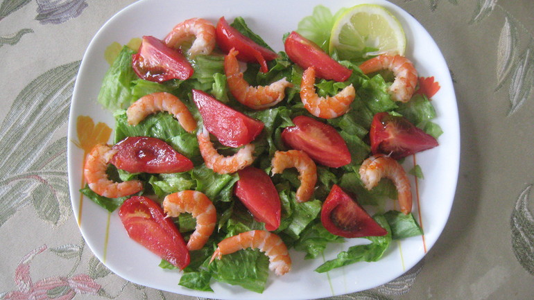 обед: салат с креветками, заправка - лимон и ол. масло ( порция приличная вышла, поэтому ничего больше не ела) - см. фото