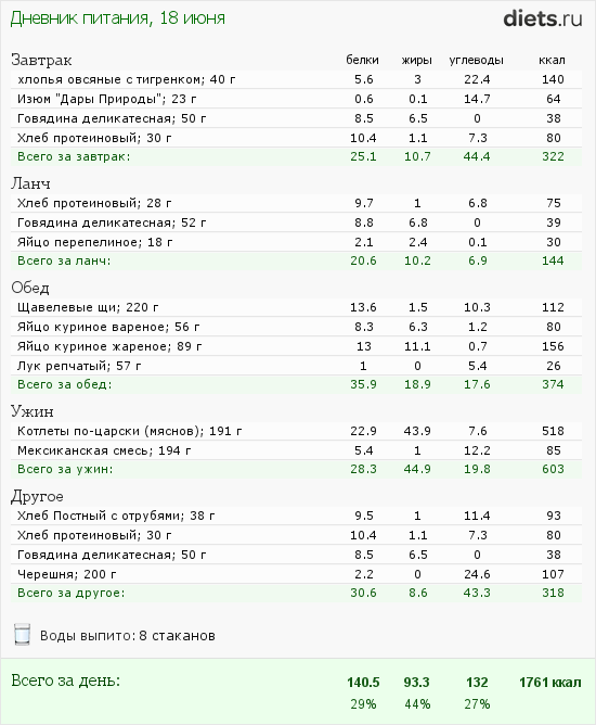 По меню, все жестко! лучше, чем вчера, но калораж - пи%дец...... Вот что значит вкусного мяска купила (это я про мясо, типа карбоната, только говядина)... Вкусное, невозможно! и я ем! голодная, как волк весь день хожу! Еще это шампанское... ((( все! надоело! завтра и тренировка и нормальная еда! никаких поблажек, даже если буду умирать с голоду! )))) (хотя с моим рационом захочешь - не помрешь! )))))))))) а ведь каждое утро так хорошо начинается - каша! но спустя буквально час после нее, я есть хочу, как будто не завтракала! ((( Надеюсь, что осталось всего пару дней...