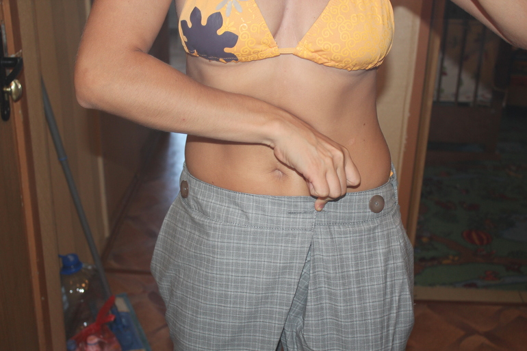 Итак, я уже писала про то, что у меня есть заветные штаны, в которые я пока не вмещаюсь. Их фото, точнее сколько до пуговицы мне осталось, я тоже выкладываю здесь.